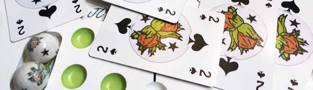 La carte de « Joker » est une carte « parteu » et permet de rejouer immédiatement ou plus tard. Si l’on rejoue sur un tour suivant, on mémorise cette possibilité grâce à une bille « Joker ». Seulement 2 billes « Joker » peuvent être stockées. Si l’on possède déjà une réserve de 2 billes, en jouant une carte « Joker », alors il est obligatoire de rejouer immédiatement.